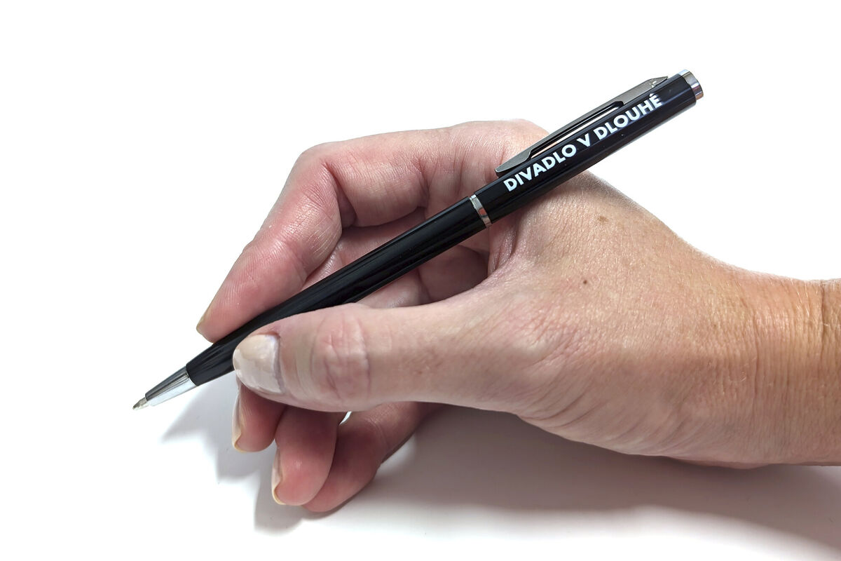 Černé kuličkové pero s kovovou konstrukcí se snadno schová do každé kabelky nebo náprsní kapsy a vždy vám připomene, že je správný čas mrknout na program vašeho oblíbeného divadla!