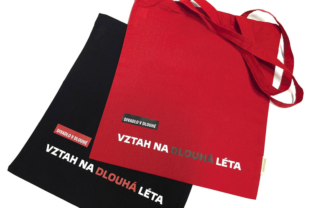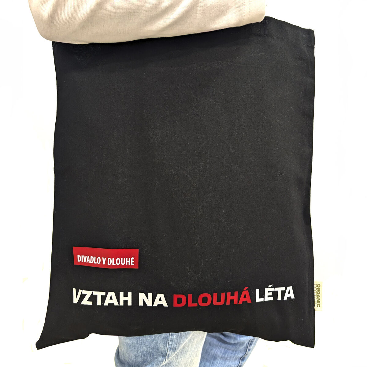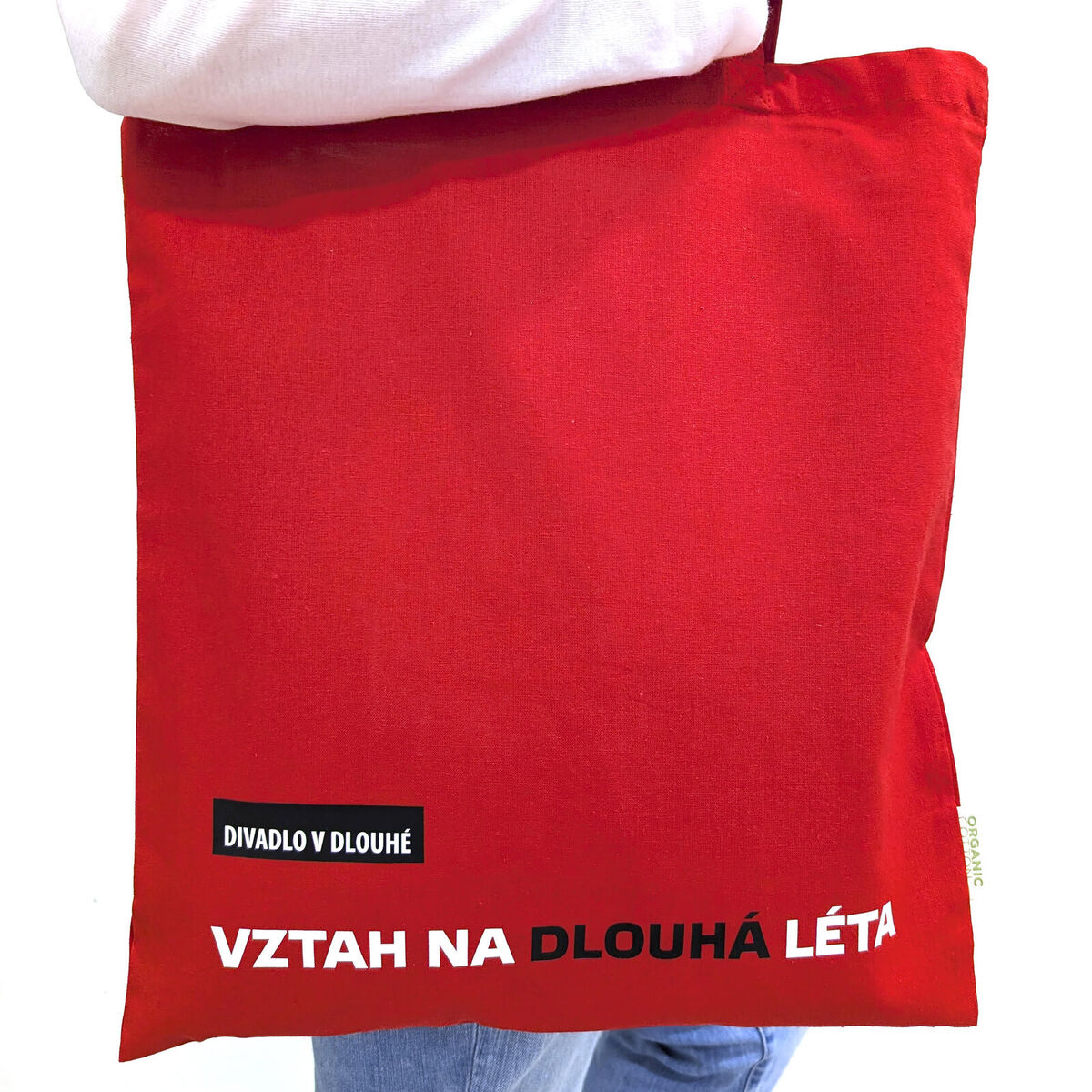 Látková taška z organické bavlny s nápisem VZTAH NA DLOUHÁ LÉTA a logem vašeho oblíbeného divadla.
