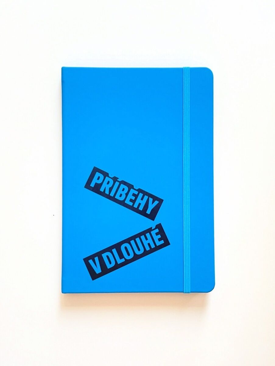 Zápisník je velikosti A5, linkovaný, s gumičkou, aby se v tašce neotvíral a listy se nepomuchlaly.