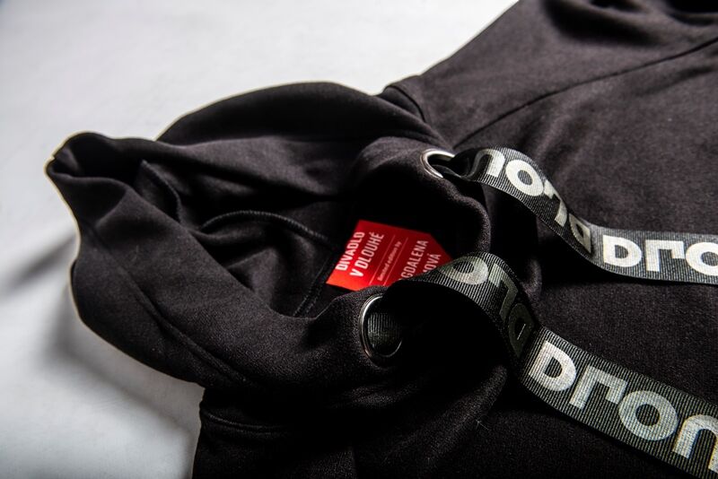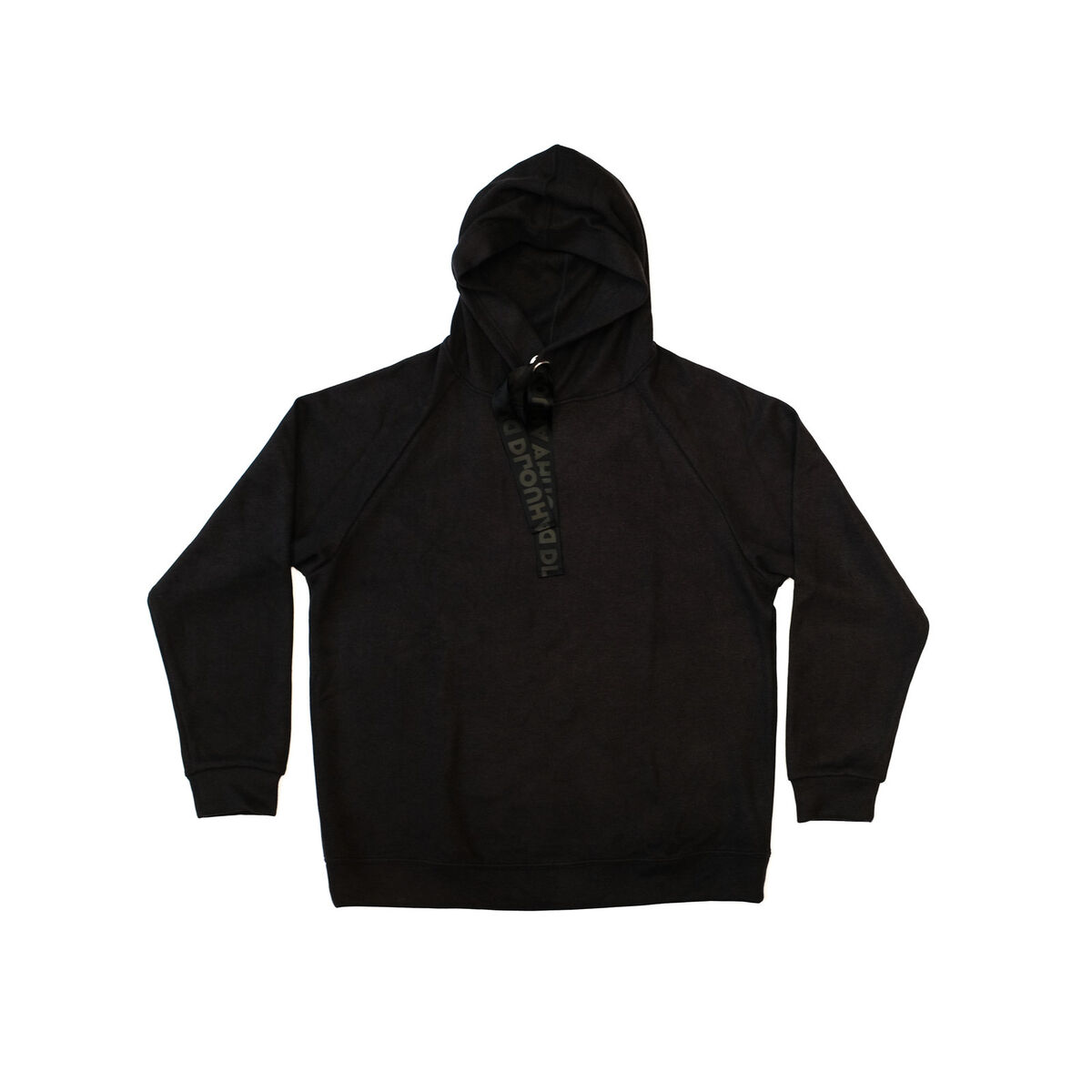 Unisex mikina v oversize střihu černá s kapucí a potištěnou stuhou