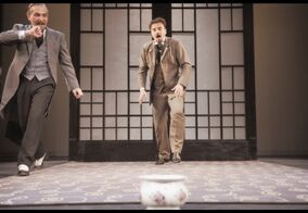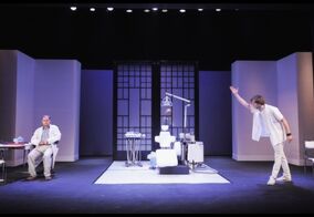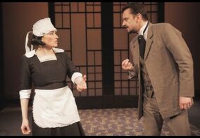 Rozpačitěji, snad s ohledem na úterní premiérovou atmosféru, se rozbíhal příběh Follavoineovic svatouška Tota, který trpí zácpou. Jeho matička fúrie (Magdalena Zimová) ještě v poledne lítá po bytě v natáčkách a v negližé. K nelibosti manžela (Tomáš Turek), zodpovědně okupujícího pracovnu, hledaje, kde jsou Hebridy.
