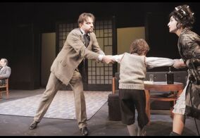 V první aktovce Dáváme děťátku klystýr, která se odehrává začátkem minulého století v rodině pařížského obchodníka s porcelánem, exceluje Magdalena Zimová coby matka malého Tota. To je to dítě, co potřebuje podat lék proti zácpě. Matěj Převrátil, který ztvárnil Tota na premiéře, je pak dokonalým zjevením dětského hereckého génia. Prostě hraje! Nepřeříkává repliky, jak jsme u hrajících dětí většinou zvyklí, je přirozený a zábavný. Klystýr nakonec samozřejmě dostane někdo úplně jiný. A rodina předvede tragikomický spor, který odhalí shnilé kořeny jejich manželského svazku.