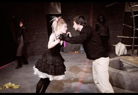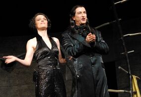 Inscenace rozehrává tuto rovinu důrazně, posouvá situace a postavy k expresivitě, která se blíží až ke grotesce. Zvláště pak Helena Dvořáková a Klára Otlová (Eglé a Adina) s gustem předvádějí nejrůznější ženské vlastnosti, jako jsou třeba dohady o tom, která je krásnější; vedle této razantní polohy ženství jsou Miroslav König a hostující Marek Němec ve svém mužství neprůrazní, utlačení, místy až bezradně tápající. Na této bázi se realizují nápaditě, temperamentně a s výraznou komediální přitažlivostí všechny situace, v nichž se více a více zaplétají vzájemné vztahy sledované čtveřice.