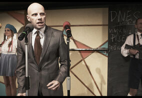 Vše – rozehrané situace, zpěv, recitace, schopnost zvládat hudební nástroje téměř na úrovni školených hudebníků – působí přirozeně, samozřejmě, jako když si nějaká sympatická parta uspořádá večírek. Takový dojem je ovšem klamný: za tím vším je promyšlená režie Jana Borny a Miroslava Hanuše, jež zdánlivě nezávaznému „bytování“ aktérů na jevišti vtiskla řád a tvar. Na první pohled je to zřejmé především v „dramatických“ a choreografických sekvencích – např. ve stepařském čísle se psy či v „malém dramatu“ svatby (z kapelníka Milana Potočka se na pár chvil stává přesmutný, „socialistický“ ajznboňák) včetně toho báječného nápadu čtení Kainarových básní jako gratulací svatebčanům.
