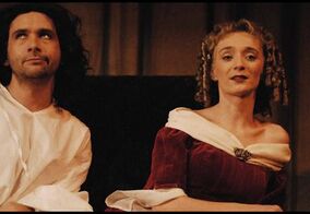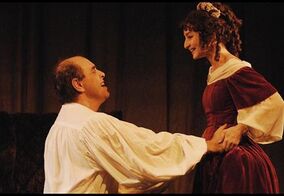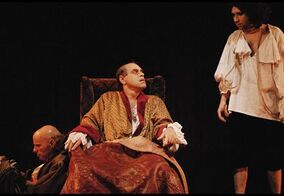 Někde mezi tím herecké kutlochy, symbolicky snížené za vyvýšenou scénou, jejich vysněným i skutečným světem. A v něm jen chvílemi šťastný, citově kvůli mladičké choti Armandě Béjartové (Klára Sedláčková-Oltová/Magdalena Zimová) rozpolcený Moliere v znamenité interpretaci - jak také u něho jinak - Miroslava Táborského. Ponižování u dvora, obrana divadla, schopnost odpouštět hříchy členům družiny, to všechno místy dojímá.