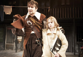 I když - slůvko „jakoby" tu vlastně není na místě, neboť základní klíč k inscenaci tkví právě v tom, že příběh D´Artagnana a jeho přátel si dítě představuje bez hodnotícího odstupu a optiky povznesené nad romantický pohled na historii s mušketýrskými avantýrami. Sedíte v hledišti a díky přesnému střídání obou časových rovin můžete mít užaslý pohled dítěte, které to, co čte, bere vážně a četbu prožívá.