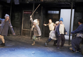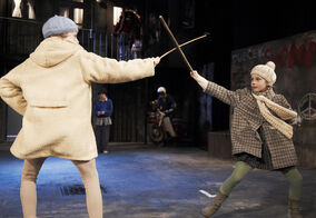 Střihy jsou o to náročnější, že se odehrávají ve dvou plánech a většina herců je obsazena ve dvou i trojrolích. Již zvládnutá složitost a obtížnost přesného timingu, v němž se všichni na sebe mohou spolehnout, stojí za potlesk, který se během druhé premiéry ozval mnohokrát. Že tempo inscenace zvládnou profesionální herci jedné z předních pražských scén, můžeme považovat asi za samozřejmost. Jak ale režisérka dokázala, aby stejně „šlapaly" i četné výstupy skupiny dětských herců, navíc všechny dětské postavy nastudovala v alternacích, je záhadou. Neobjeví se u nich jediný nešvar dětské roztomilosti, přebrebtů či neukázněnosti a přitom nepůsobí jako cvičené opice, ale jako malí umělci, kteří mají zvládnuté řemeslo stejně jako jejich dospělí kolegové.