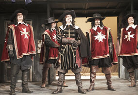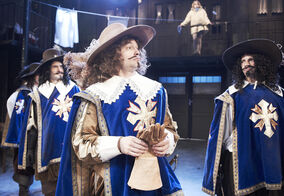 A co teprve mušketýři! Spojuje se v nich světáctví, furiantství a labužnictví, to vše podáno s dětskou upřímností, ale zároveň v uvozovkách. Trojici Athos (Jan Vodráček), Porthos (Miroslav Hanuš) a Aramis (Pavel Tesař) doplňuje chlapecký d´Artagnan Marka Němce, tak trochu moula, ale zároveň idol bez bázně a hany, vrhající se s bezhlavou zaujatostí do nebezpečí, skoků z pavlače a šermířských půtek, dávající lásku ženám najevo s velkými romantickými gesty.